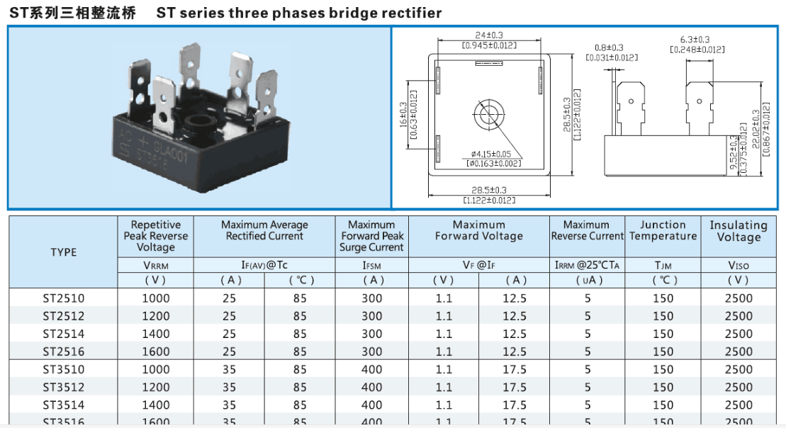 整流橋堆就是將整流管封在一個殼內(nèi)了。分全橋和半橋。全橋是將連接好的橋式整流電路的四個二極管封在一起。半橋是將兩個二極管橋式整流的一半封在一起,用兩個半橋可組成一個橋式整流電路,一個半橋也可以組成變壓器帶中心抽頭的全波整流電路,選擇整流橋要考慮整流電路和工作電壓。