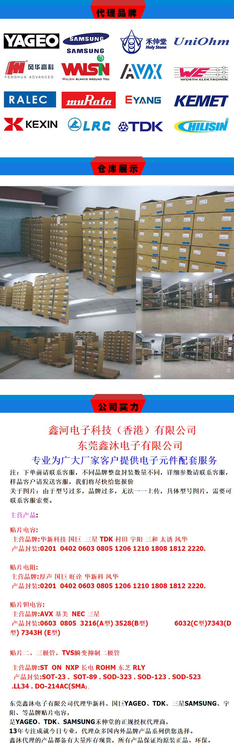 涵蓋YAGEO國(guó)巨、SAMSUNG 三星、WALSIN 華新科、HEC禾伸堂等國(guó)際品牌,正式渠道國(guó)外訂貨報(bào)關(guān),產(chǎn)品來(lái)源有保障